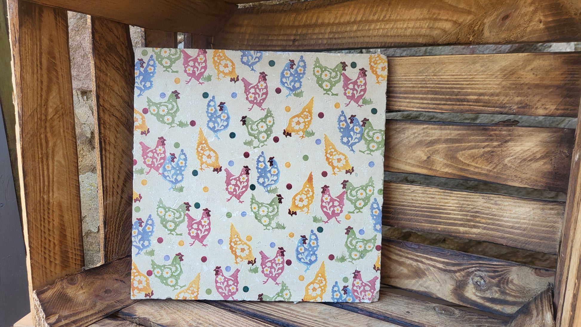 Large stone Trivet/ worktop saver. These make a great addition to any kitchen work surface. 300x300mm. This is a handmade product that is cut from the Raw material of natural stone, some elements may vary in finish. Please note this means there may be holes/blemish's due to the natural formation of this beautiful stone. With its heat resistant finish they are multi functional, placemats, trivets, worktop savers, platters or a simple centre piece. Each piece comes with foam pad feet to prevent damage to surfaces. Not suitable for the Dishwasher, do not submerge in water, wipe clean only. Available in various sizes & designs.